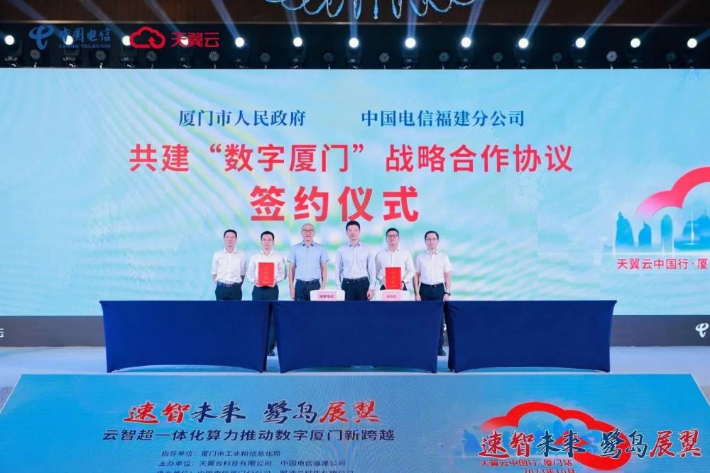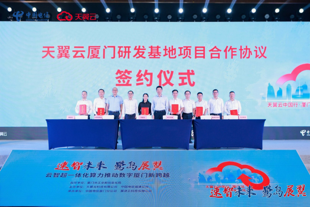 2023年10月30日,“速智未来 鹭岛展翼”云智超一体化算力推动数字厦门新跨越系列活动在福建厦门成功举办。省市政府部门领导、中国电信福建公司领导、各合作伙伴企业代表与天翼云共聚一堂,活动现场举行“速智未来 鹭岛展翼”主题展、厦门市与天翼云项目及福建电信战略合作签约仪式、“天翼云杯”厦门算力应用大赛赛题征集等,以科技创新夯实厦门算力底座,携手合作伙伴共建数字生态,为福建省数字经济高质量发展增添新动能。